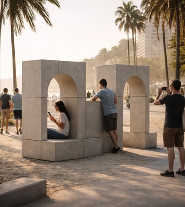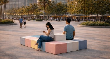 Installations are designed to move across locations, extending their lifecycle and enabling repeat urban activation while reducing the need for repeated fabrication.